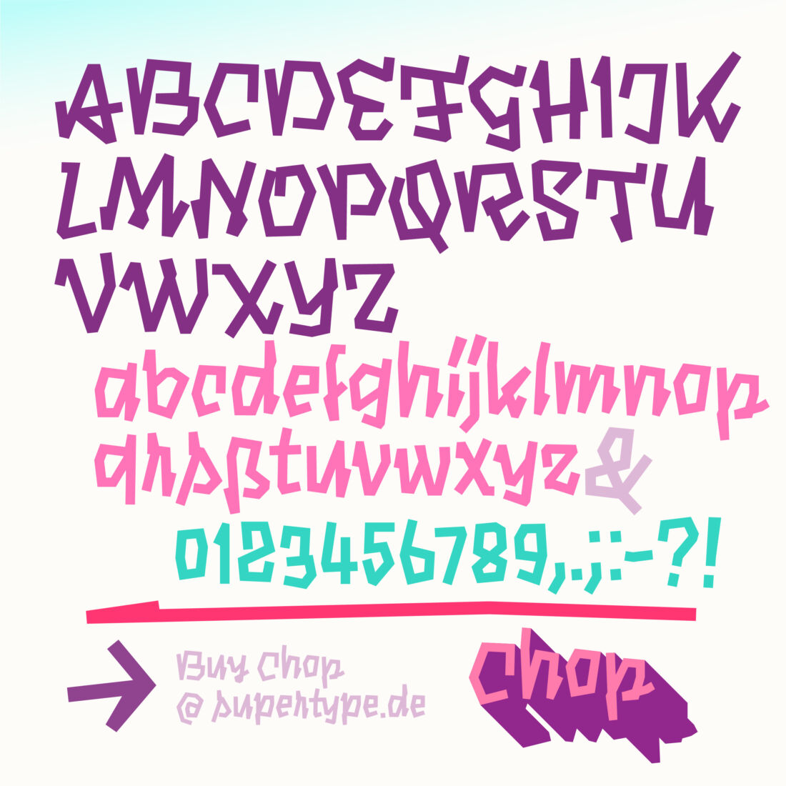 Chop references the raw motion of woodcutting—sharp, physical, and immediate. The letters follow that same logic: carved in gesture, not refined in detail.